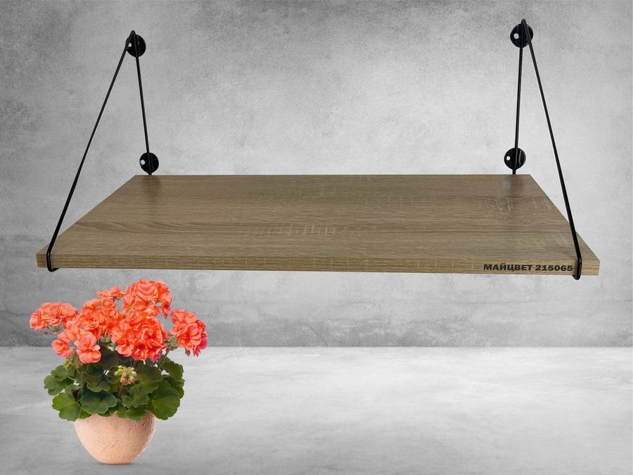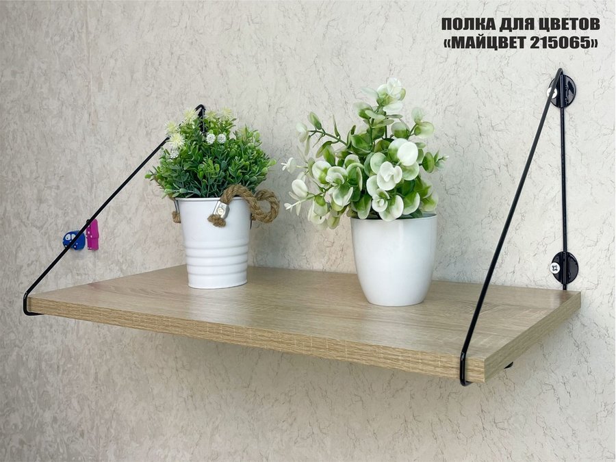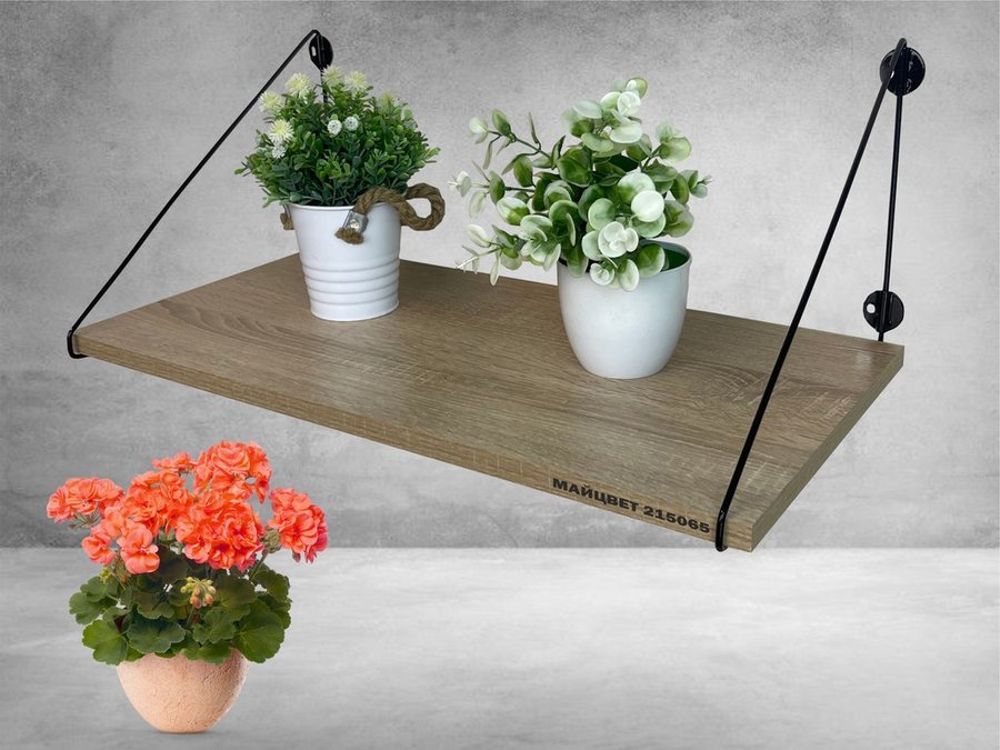 Полка выдержит тяжелые цветочные горшки с растениями, фоторамки, книги, сувениры и много другое.