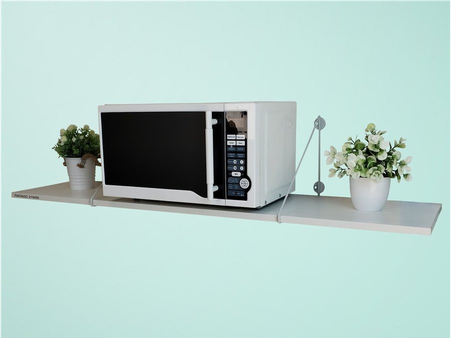 Полка для микроволновки "ПАПАОС 215008" высота 26 см размер 120х30 см серый и сосна выбеленная