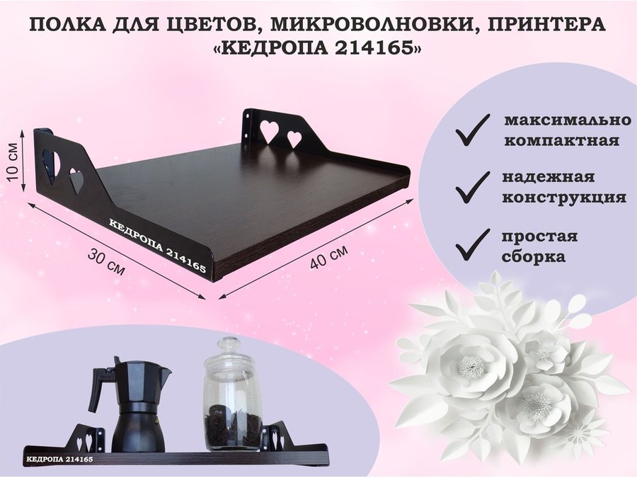 Полка для микроволновки "ПАПАОС 215123" высота 26 см размер 90х30 см серый и белый шагрень
