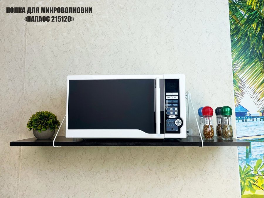 Полка для микроволновки "ПАПАОС 215120" высота 26 см размер 90х30 см белый и венге