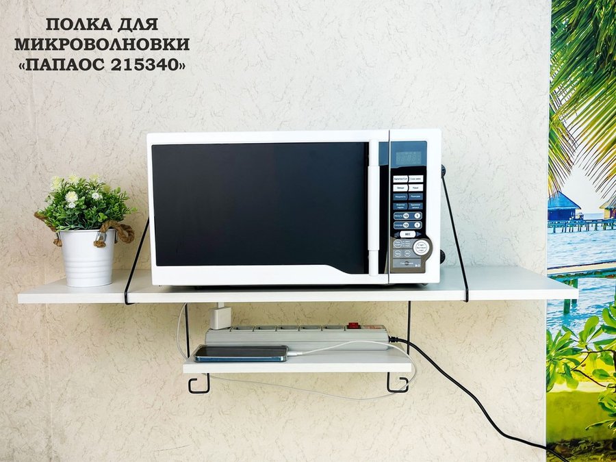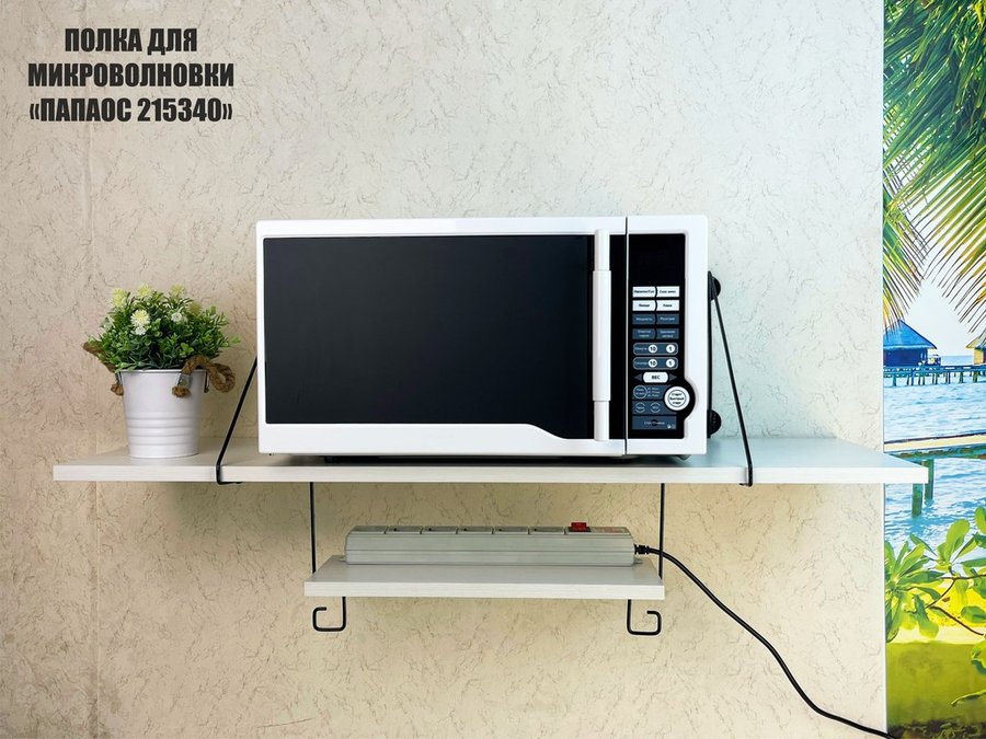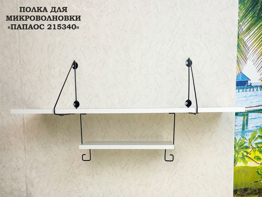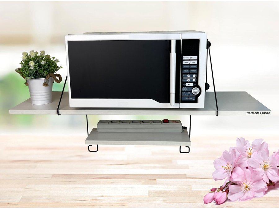 Полка для микроволновки "ПАПАОС 215340" высота 46,5 см размер 90х30 см черный и сосна с полкой
