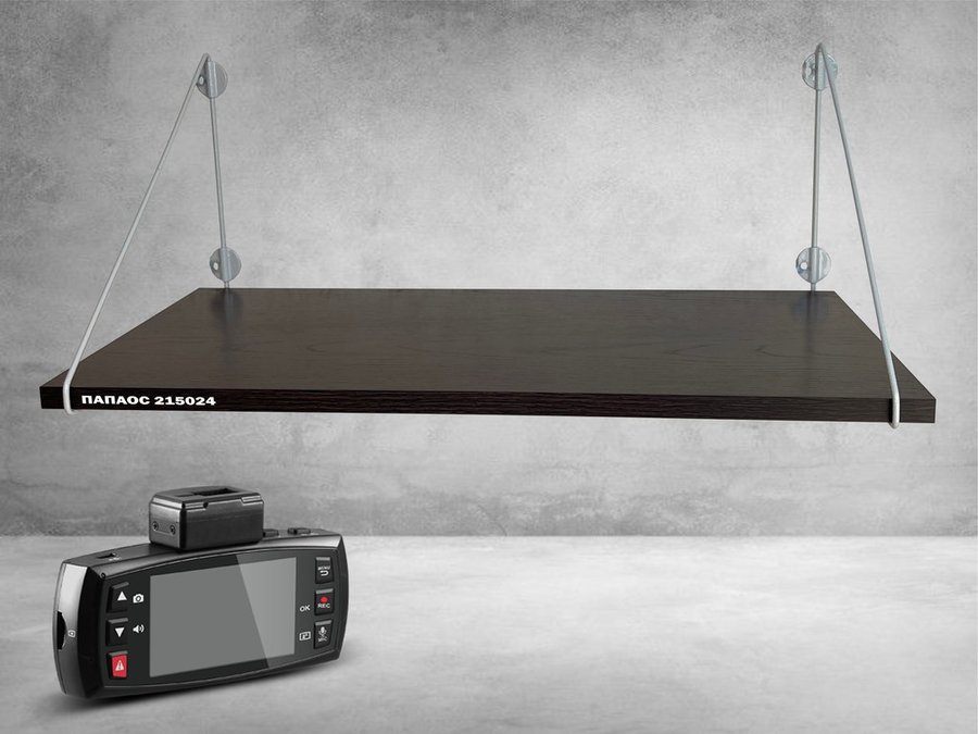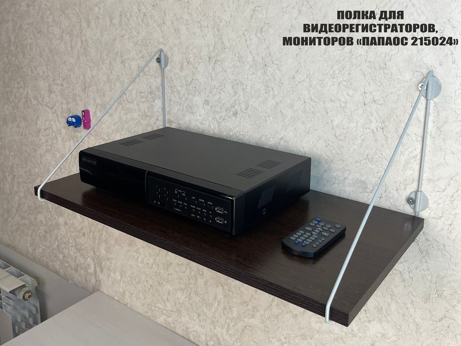 Полка надежно крепится к стене при помощи анкеров или шурупов с дюбелями, на ней можно разместить видеорегистратор, монитор и многое другое