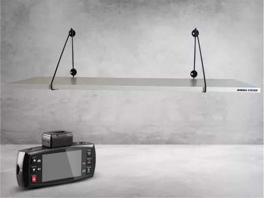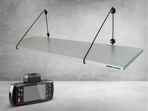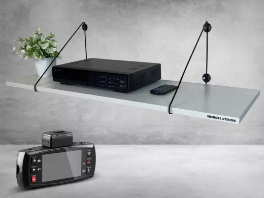 - Полка надежно крепится к стене при помощи анкеров или шурупов с дюбелями, на ней можно разместить видеорегистратор, монирот