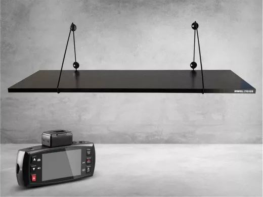 - Полка надежно крепится к стене при помощи анкеров или шурупов с дюбелями, на ней можно разместить видеорегистратор, монирот