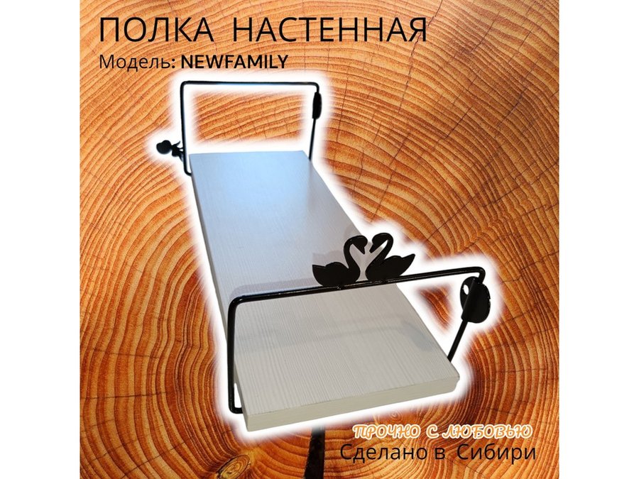 Полка настенная для книг 15x 40 см сосна выбеленная "ABIBOOK-215318" с лебедями