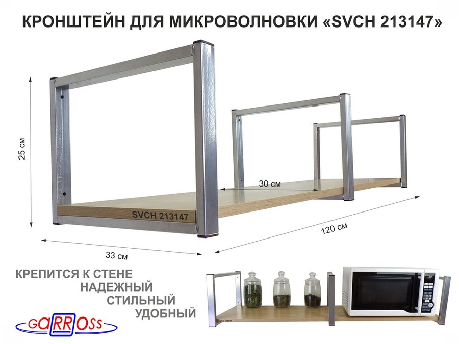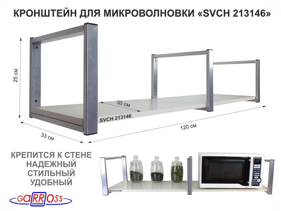 Кронштейн для микроволновки, 25см серый, 1 полка 30х120см "SVCH 211635" под микроволновую печь,лаван