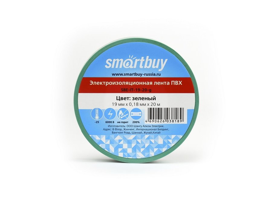 В корзину Купить в 1 клик Изолента 19мм х 20метров зеленая Smartbuy (SBE-IT-19-20-g) 0,18мм