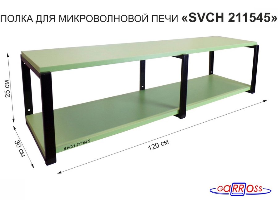Кронштейн для микроволновки, 27см черный, 2 полки 30х120см "SVCH 211545" под микров. печь,салатовый