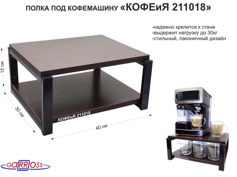 В корзину Купить в 1 клик Полка под кофемашину к стене, высота 17см, черный каркас "КОФЕиЯ 211018" полки 30х40см, венге