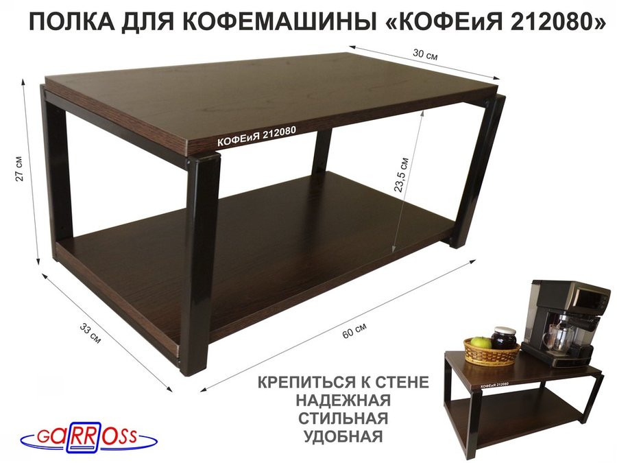 - Каркас изделия выполнен из высокопрочного металла. Полка изготовлена из ламинированного ДСП