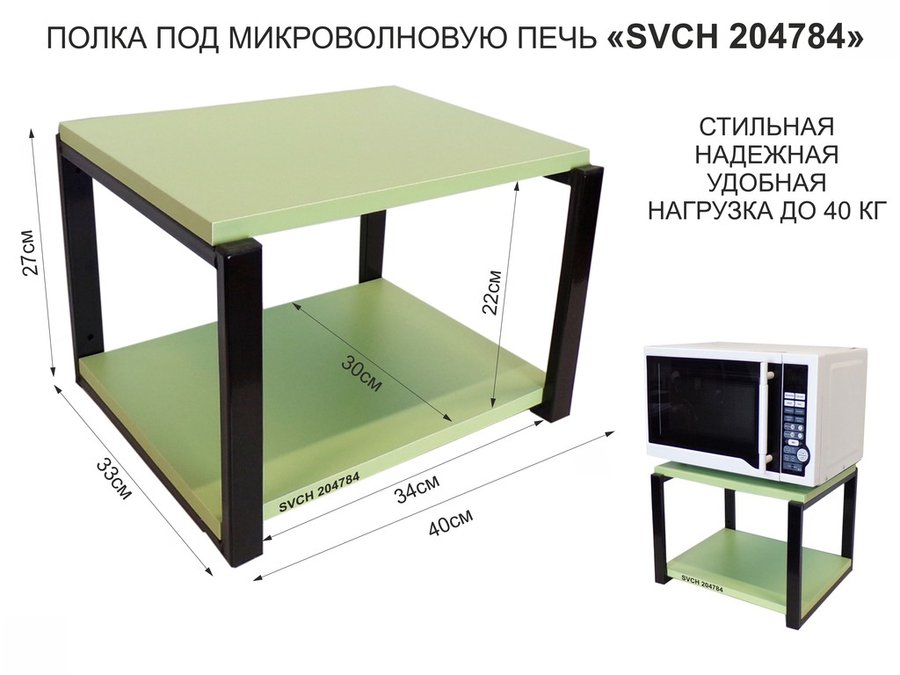 Кронштейн для микроволновки, 27см чёрный "SVCH 204784" под микроволновую печь, полка 30х40,салатовый