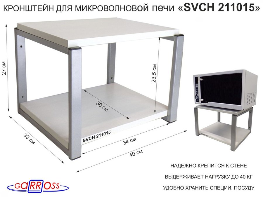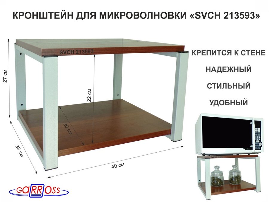 Полки для микроволновок "SVCH" кронштейны для СВЧ печей, высота 27см, 40х30см, 2 уровня
