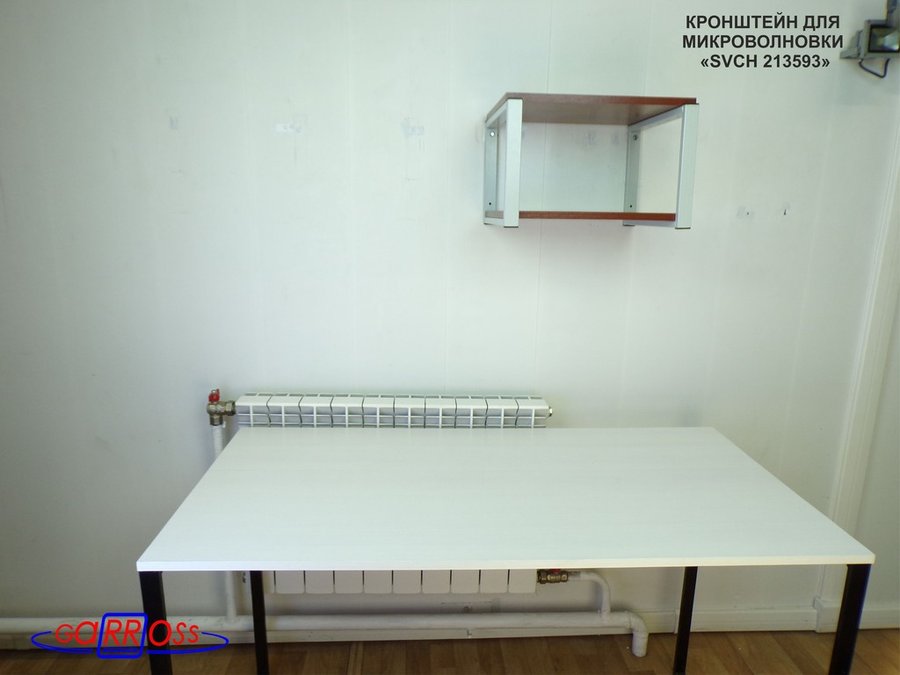 • Полка надежно крепится к стене при помощи шурупов с дюбелями, на ней можно разместить микроволновую печь, тостер, кофемашину, чайник, посуду, специи