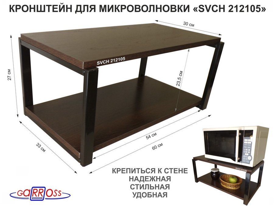 Кронштейн для микроволновки, 27см черный "SVCH 212105" полка под микроволновую печь, 60х30, венге