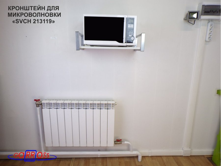 Кронштейн для микроволновой печи, серебристый "SVCH 213119" высота 15 см, полка 60х30 см,сосна выбел