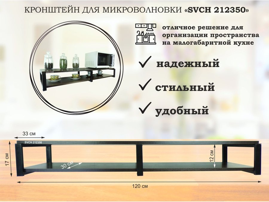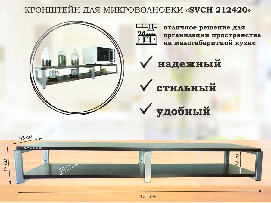 Полки для микроволновок "SVCH" кронштейны для СВЧ печей, высота 17см, 120х30см, 2 уровня