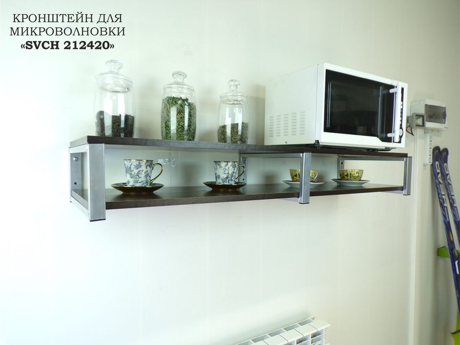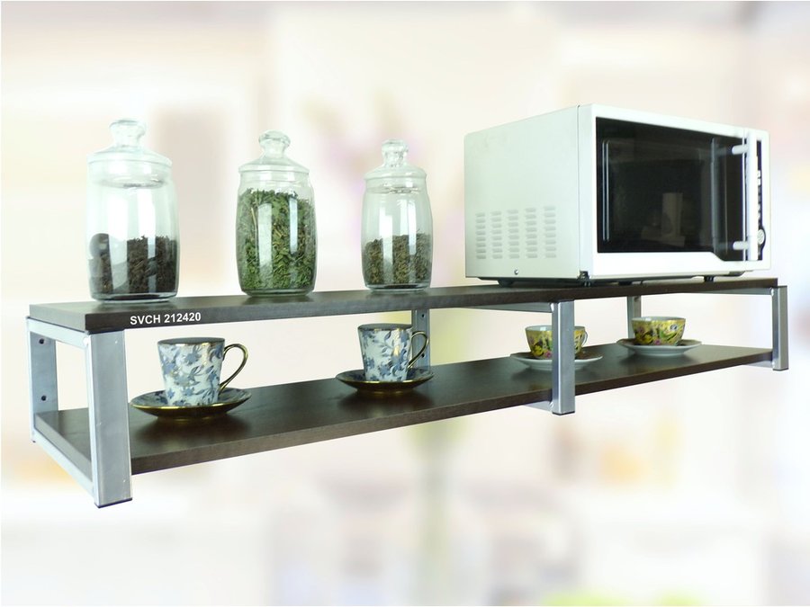 Кронштейн для микроволновки, 17см серебристый, 2 полки 30х120см "SVCH 212420" венге