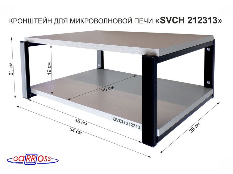 Кронштейн для микроволновки, 21см чёрный "SVCH 212313" две полки 35х54см, сосна выбеленная