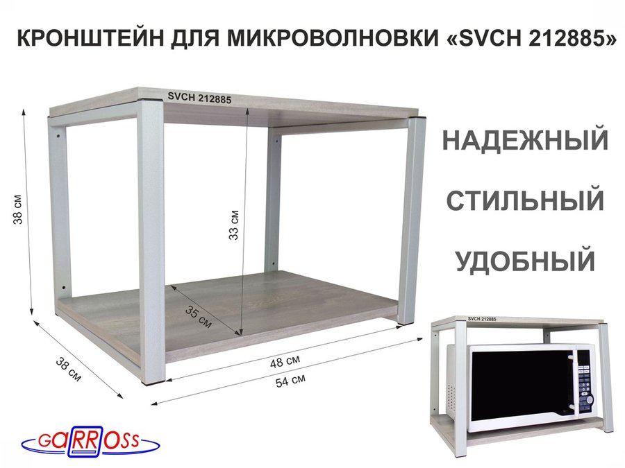 В корзину Купить в 1 клик Кронштейн для микроволновки, 38см серый "SVCH 212321" две полки 35х54см, дуб сонома