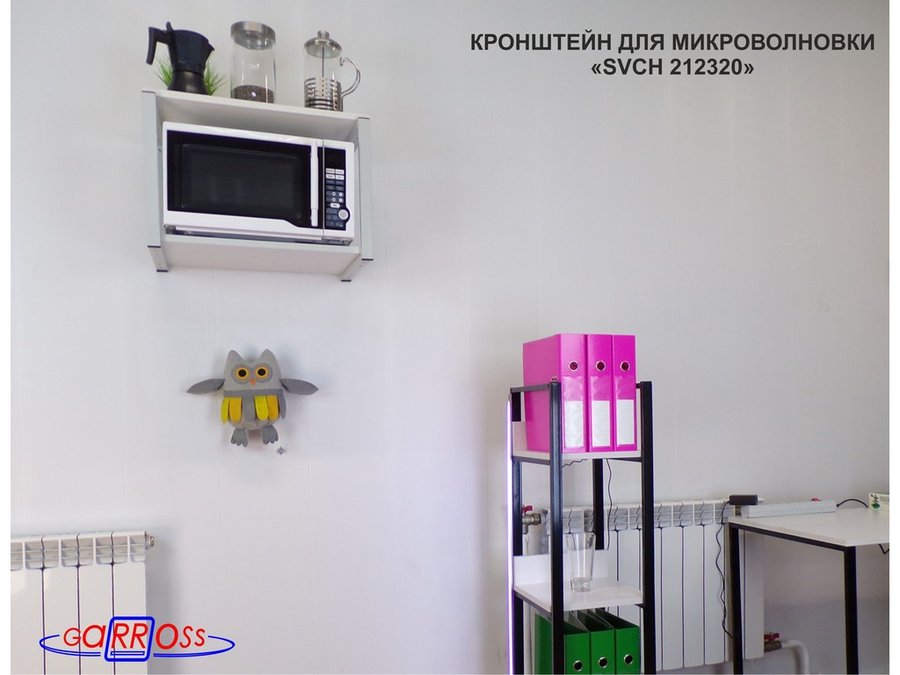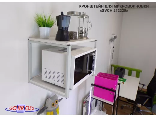 Кронштейн для микроволновки, 38см серый "SVCH 212320" две полки 35х54см, сосна выбеленная