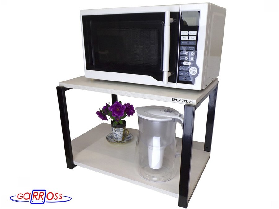Кронштейн для микроволновки, 38см черный "SVCH 212323" две полки 35х54см, сосна выбеленная