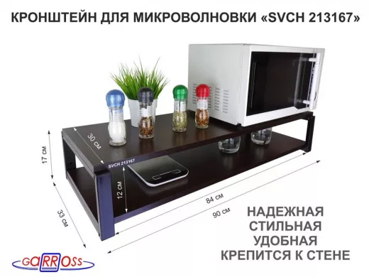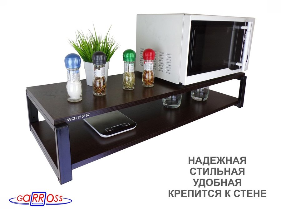 Кронштейн для микроволновки, 17см чёрный "SVCH 213167" под микроволновку,две полки 90х30, венге