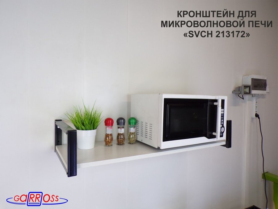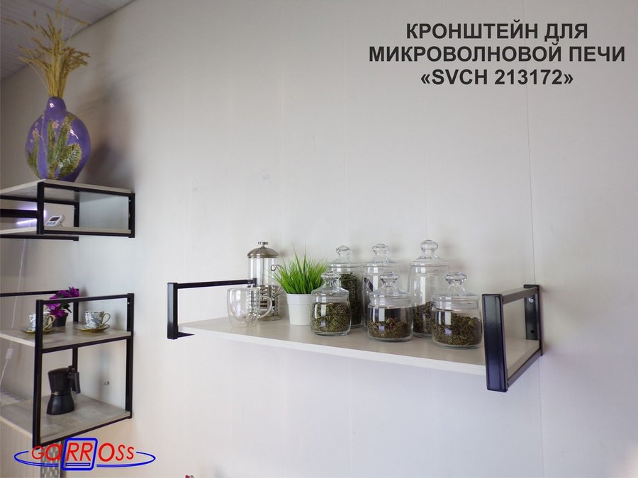 Кронштейн для микроволновой печи, 15см чёрный "SVCH 213172" полка 90х30, сосна выбеленная
