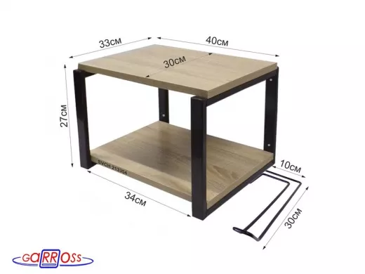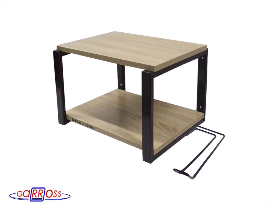 • Каркас изделия выполнен из высокопрочного металла. Полка изготовлена из ламинированного ДСП