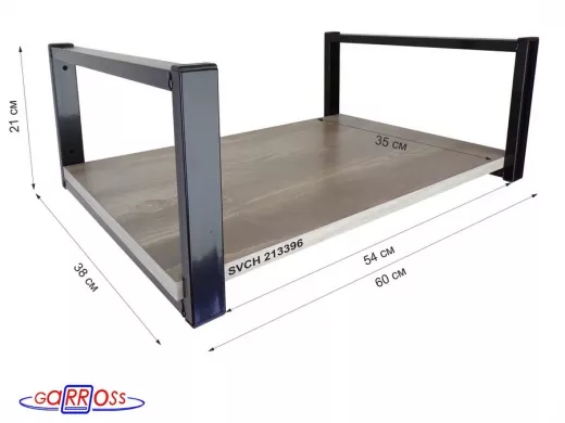 Кронштейн для микроволновки, 21см чёрный "SVCH 213396" одна полка 35х60см, лофт