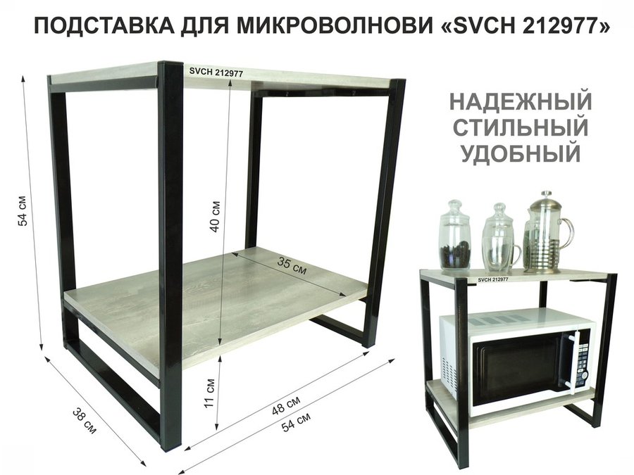 В корзину Купить в 1 клик Подставка для микроволновки, черный, 55см "SVCH 212977" с двумя уровнями, лофт