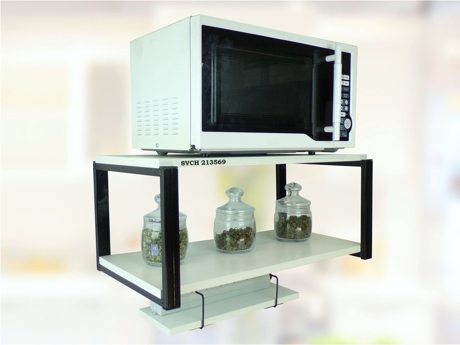 - На верхней полке можно разместить микроволновую печь или другую кухонную технику, на средней отлично "встанет" посуда, баночки под сыпучее и многое другое, а нижняя полка отлично подойдет для специй, таймера или маленьких сувениров