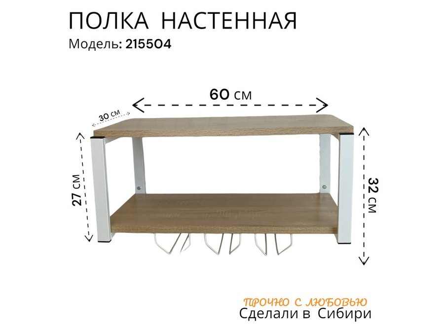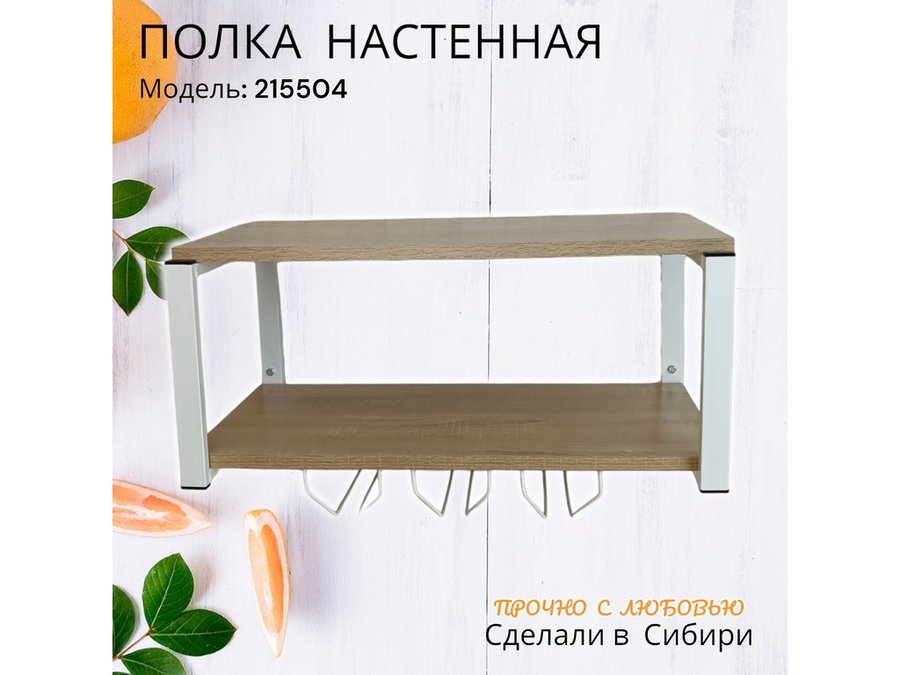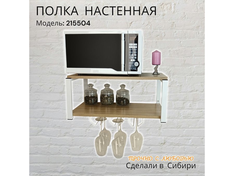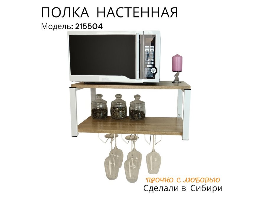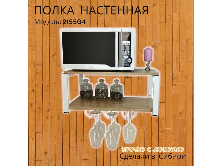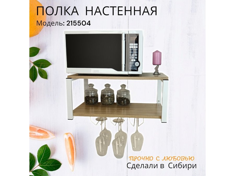 Полка c тремя бокалодержателями для микроволновки "SVCH 215504" 60х30см, белая, дуб сонома