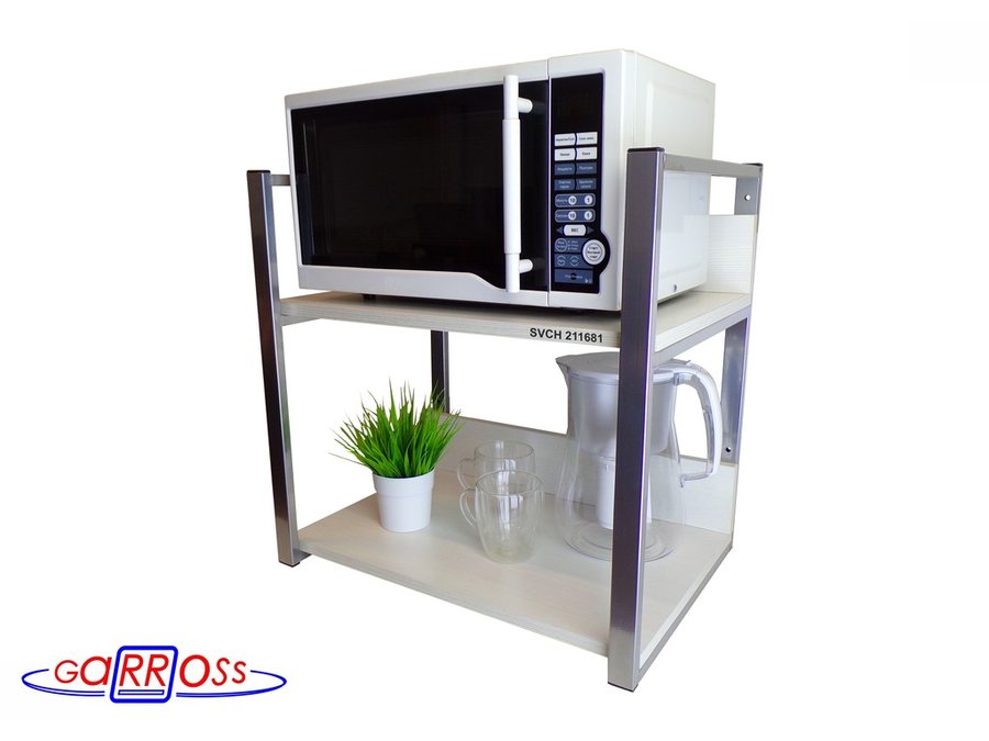 Кронштейн для микроволновки, 54см серебристый "SVCH 211681" две полки 35х54см со стенками, сосна