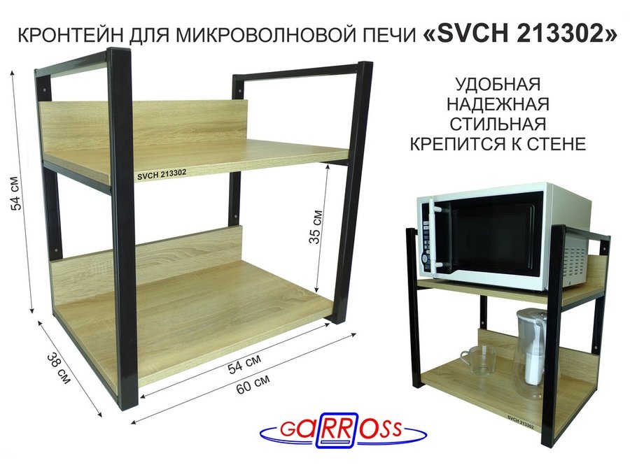 Кронштейн для микроволновки, высота, 54см черный "LAMAGIA 213302" две полки 35х60см со стенками, дуб