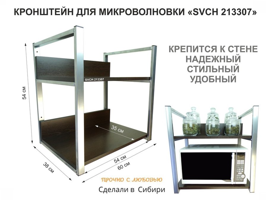 Кронштейн для микроволновки, высота, 54см черный "LAMAGIA 213304" две полки 35х60 со стенками, венге