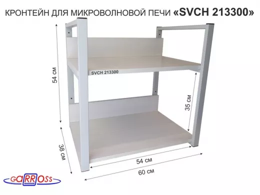 Кронштейн для микроволновки, высота, 54см серый "SVCH 213300" две полки 35х60см со стенками, сосна