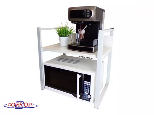 Универсальная подставка для бытовой техники (микроволновой печи, кофемашины, тостера, электрического чайника и др) позволяет эффективно использовать место на столе.