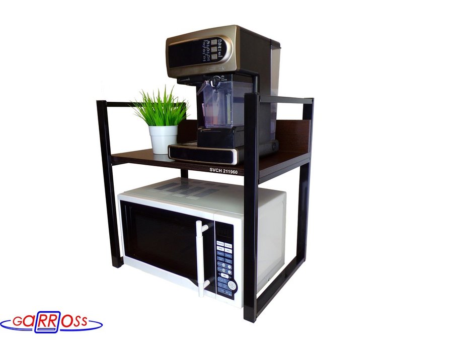 Универсальная подставка для бытовой техники (микроволновой печи, кофемашины, тостера, электрического чайника и др) позволяет эффективно использовать место на столе.