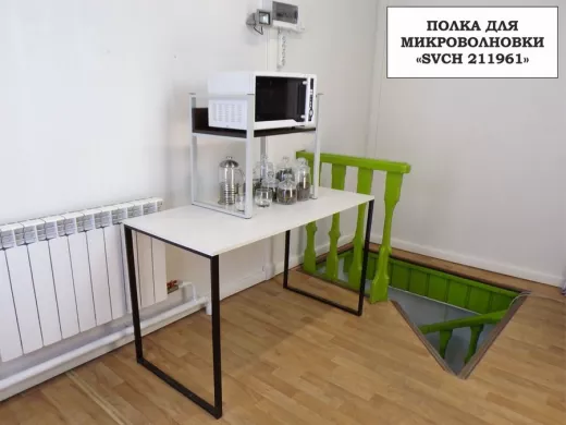 Универсальная подставка для бытовой техники (микроволновой печи, кофемашины, тостера, электрического чайника и др) позволяет эффективно использовать место на столе.