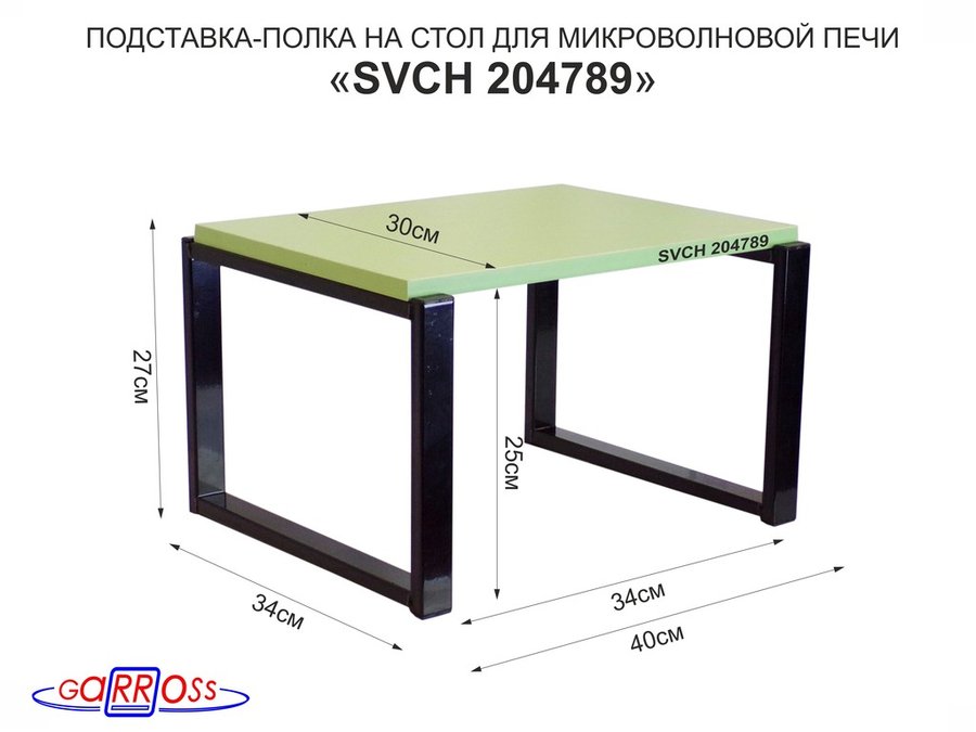 Подставка, полка на стол для микроволновой печи, высота 27см чёрный "SVCH 204789" 30х40см, салатовый