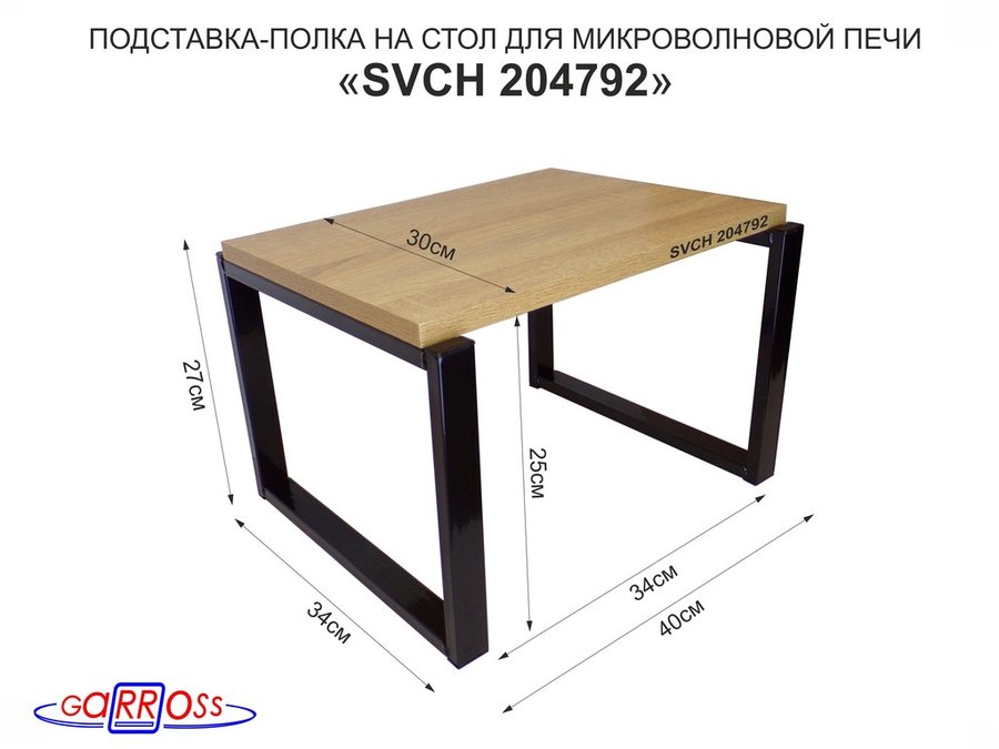 Подставка, полка на стол для микроволновой печи, высота 27см чёрный "SVCH 204792" 30х40см,дуб сонома