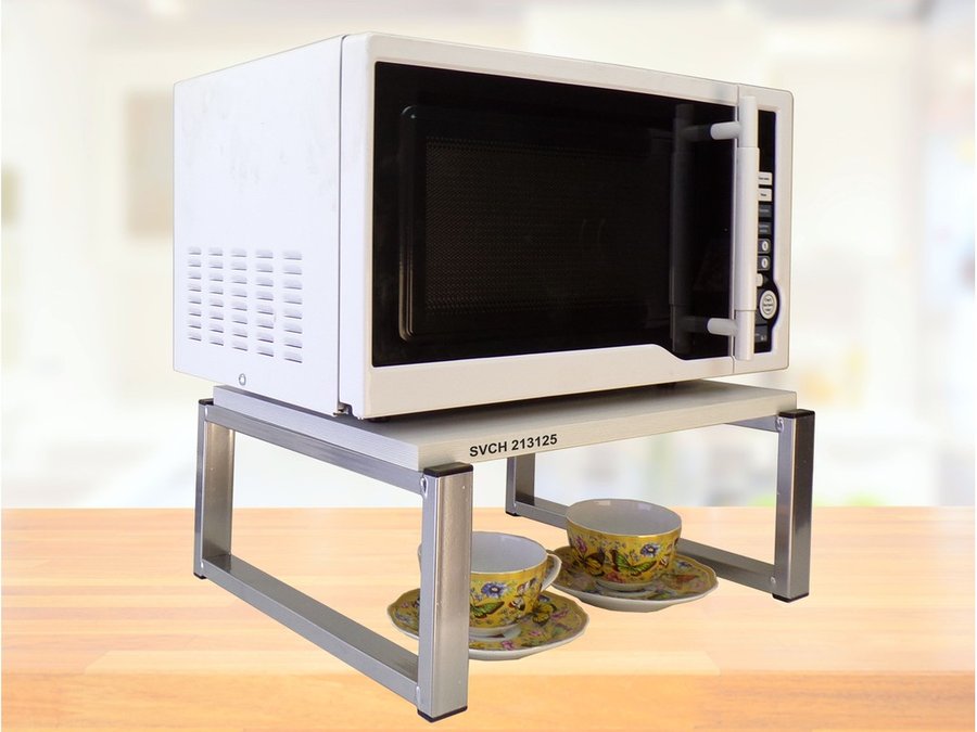Универсальная подставка для микроволновой печи позволяет эффективно использовать место на столе.