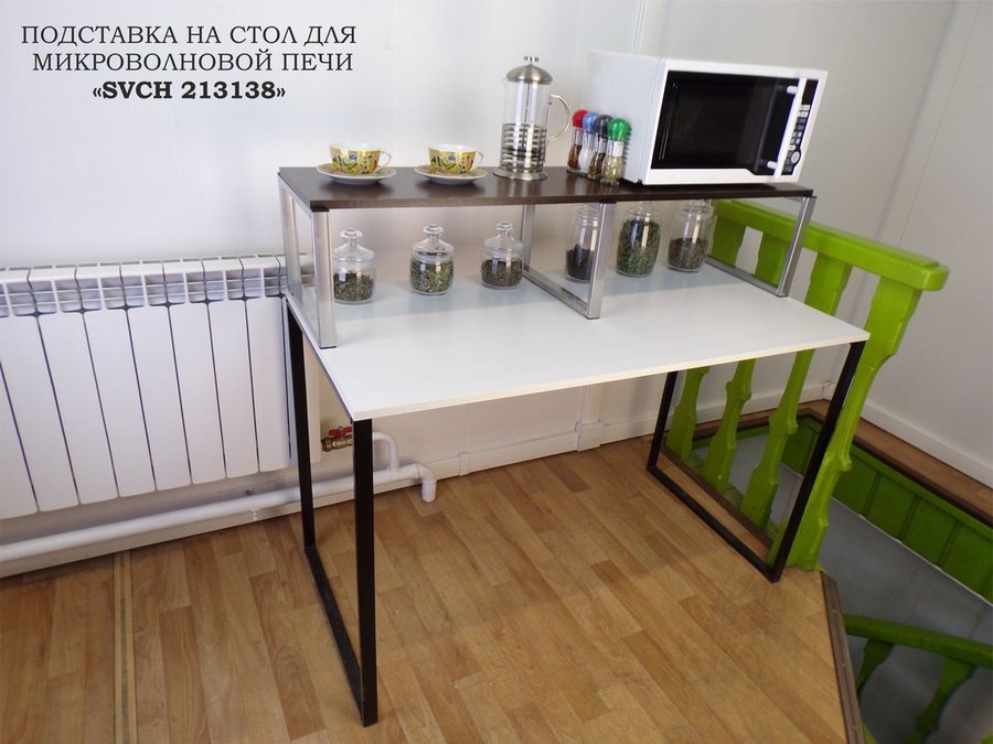 - Универсальная подставка для микровоновой печи позволяет эффективно использовать место на столе.