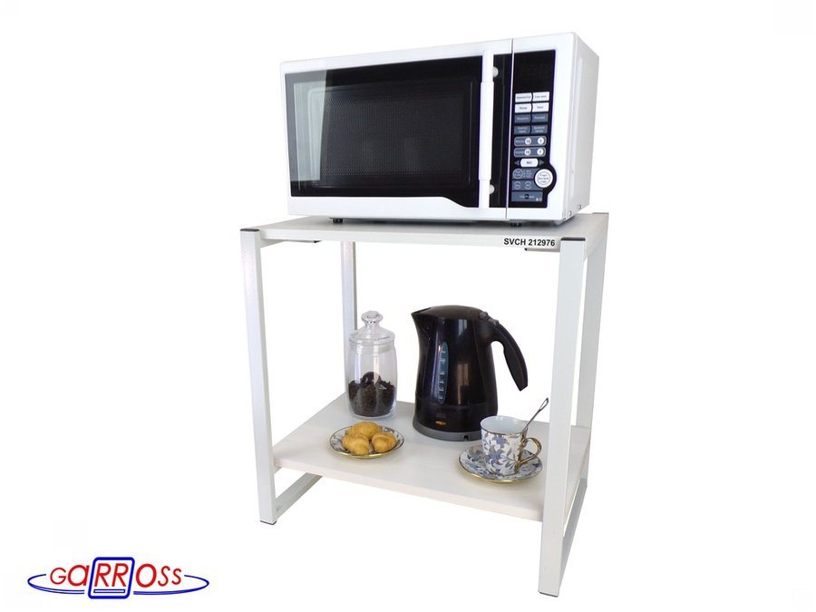 Универсальная подставка для бытовой техники (микроволновой печи, кофемашины, тостера, электрического чайника и др) позволяет эффективно использовать место на столе.