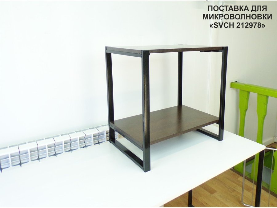 Каркас изделия выполнен из высокопрочного металла. Полка изготовлена из ламинированного ДСП