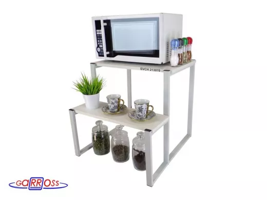 - Универсальная подставка для бытовой техники (микровоновой печи, кофемашины, тостера, электрического чайника и др) позволяет эффективно использовать место на столе.