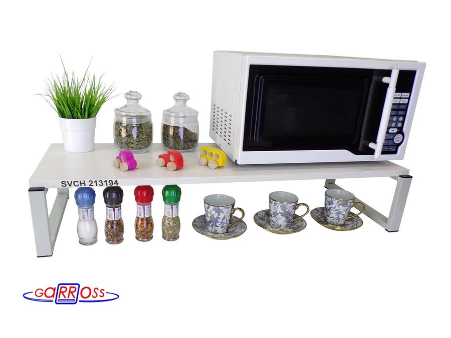 - Универсальная подставка для микровоновой печи позволяет эффективно использовать место на столе.