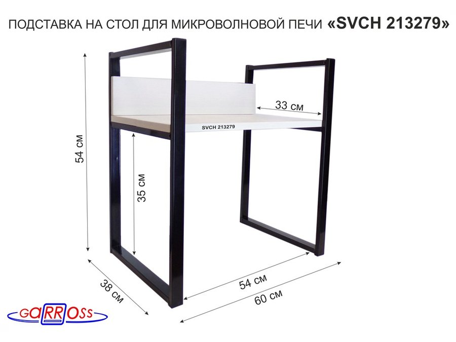Подставка, полка на стол для микроволновой печи, высота 54см черный "SVCH 213279"полка 35х60см,сосна
