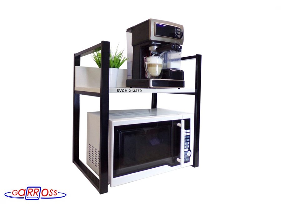 Универсальная подставка для бытовой техники (микроволновой печи, кофемашины, тостера, электрического чайника и др) позволяет эффективно использовать место на столе.