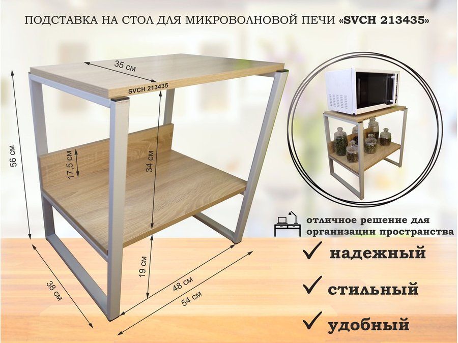 Подставка, полка на стол для микроволновой печи, высота 56см, серебристый "SVCH 214718" 35х54, сосна